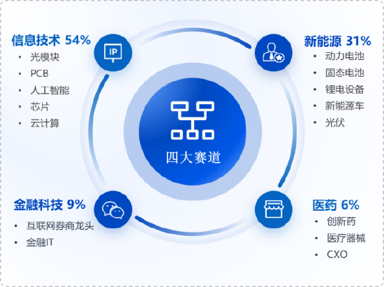 创业板为主要“三创(创新、创造、创意)四新(新技术、新产业、新业态、新模式)”的成长型创新创业企业提供直接融资平台。权重行业方面,创业板50指数聚焦信息技术+新能源+金融科技+医药四大新质生产力赛道,科技成长属性纯粹。